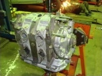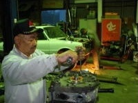 オイルパン取り付け。ショートエンジン完成。エンジンラッピング中。
